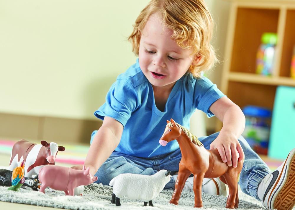 Na farmie czeka mnóstwo okazji do kreatywnej zabawy dla małych farmerów. W zestawie znajduje się krowa, świnia, koza, owca, gęś, kogut oraz koń — wszystkie przygotowane na długie godziny wesołej zabawy. Wykonane z trwałego, gumowanego plastiku, wysokiej jakości zabawkowe zwierzęta z farmy są łatwe do czyszczenia po zakończonej zabawie i doskonale sprawdzają się zarówno w domu, jak i w przedszkolu.
