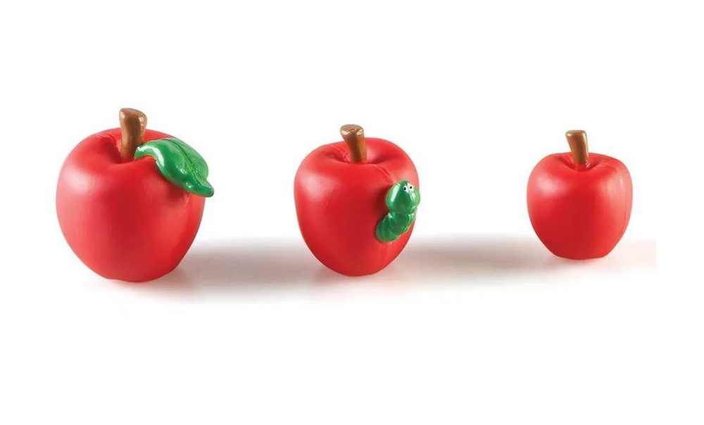 Zestaw służy do porównywania i kategoryzowania jabłek na wiele sposobów- poprzez rozmiar, kolor, a także drobne różnice w postaci ogonka, liścia, czy robaczka na owocu.