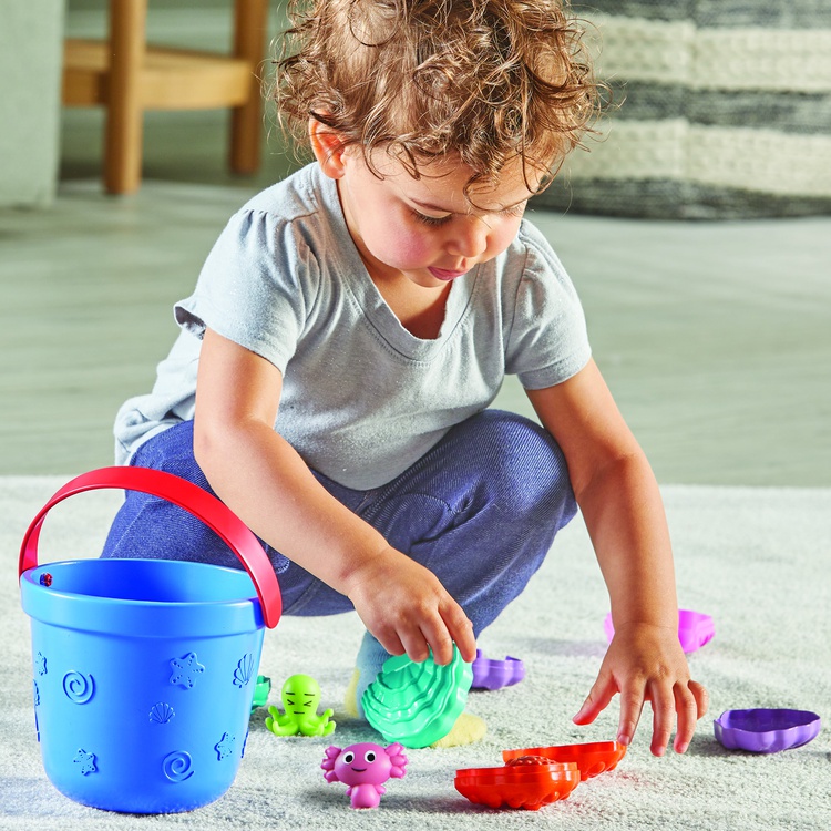 Dzięki zabawie muszelkami i morskimi stworzeniami dzieci rozwijają kompetencje społeczne. Otwieranie i zamykanie dwuczęściowych muszelek oraz zabawa dołączonym do zestawu wiaderkiem zachęcają do sensorycznego odkrywania świata.