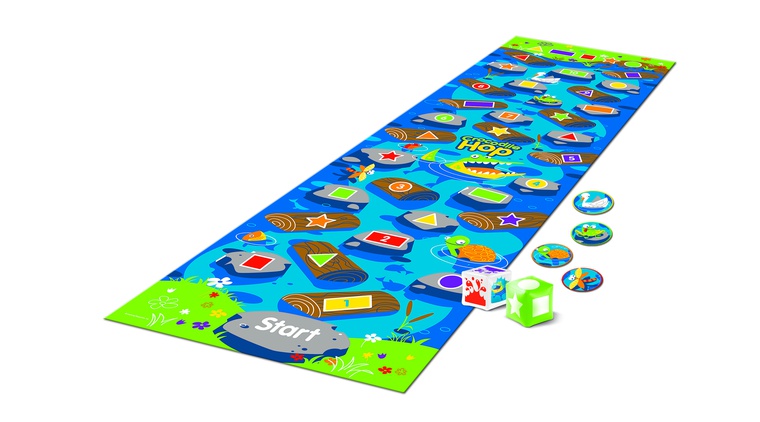Skacząc po macie-rzece, dzieci uczą się rozpoznawania kolorów, kształtów oraz liczenia od 1 do 10. Gra wspiera rozwój kluczowych umiejętności takich jak rozwiązywanie problemów, przestrzeganie zasad gry i podejmowanie tur według kolejności.